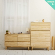 [마루이] 순수 에쉬우드 패키지 N.1(5단 서랍장+와이드 서랍장)
