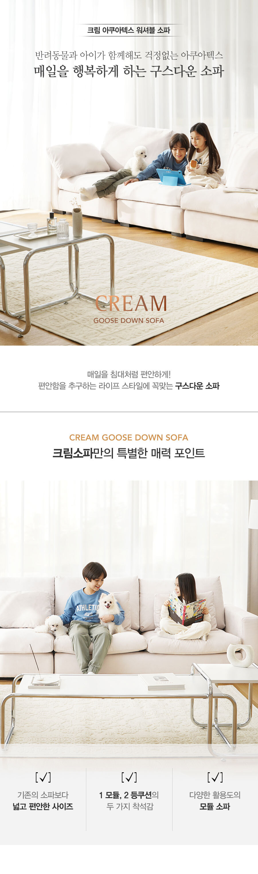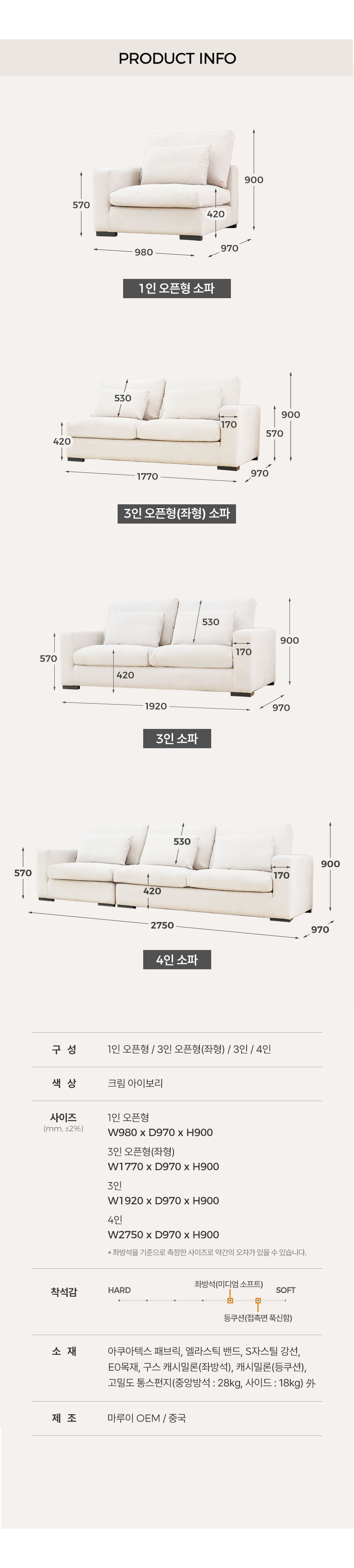 | 품명 | 마루이 크림 구스다운 아쿠아텍스 워셔블 모듈 소파 3인 |