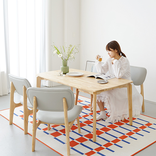 모아이 캐러멜 낮은 4인 1400 원목 식탁 세트 벤치형