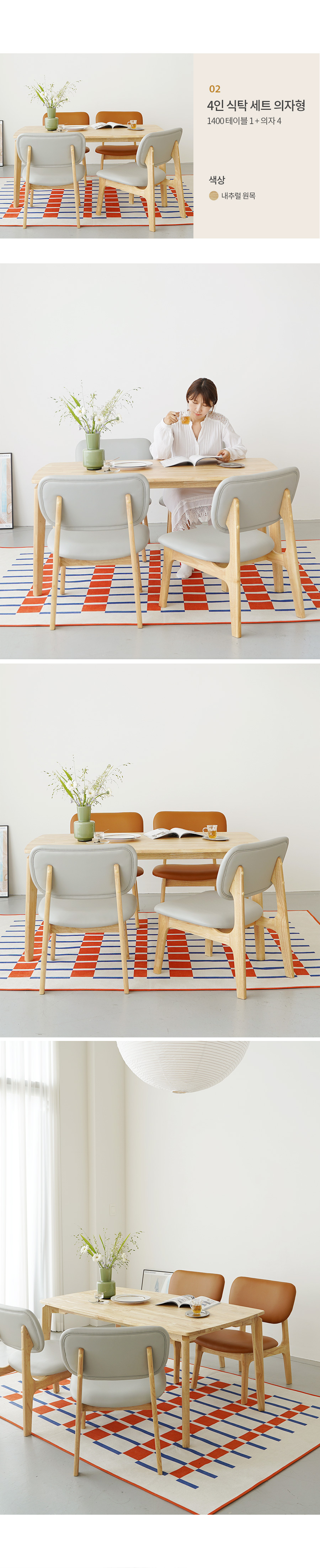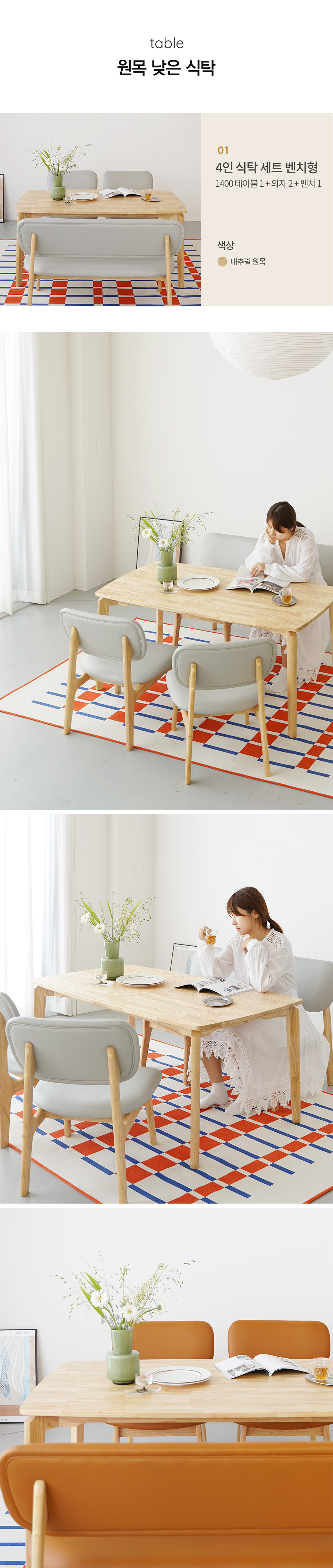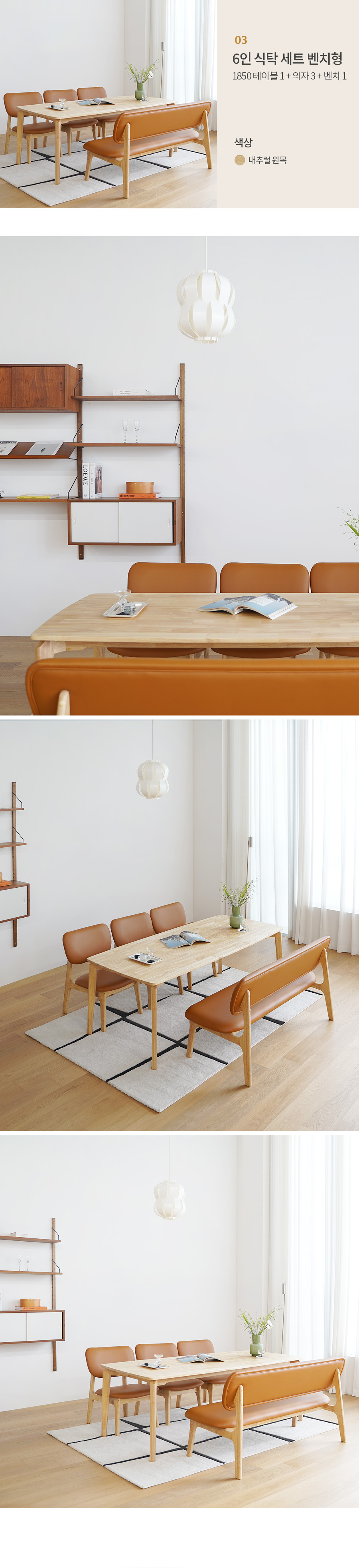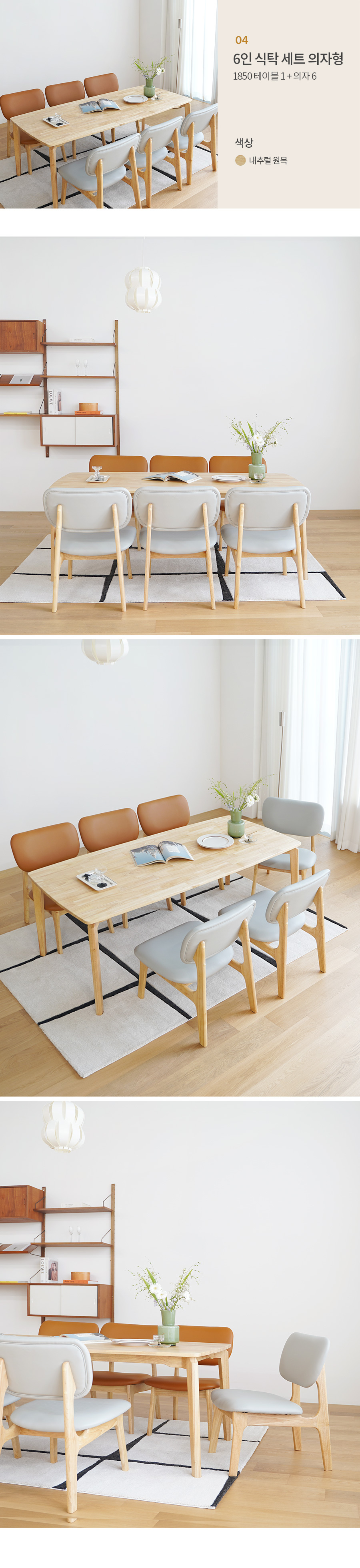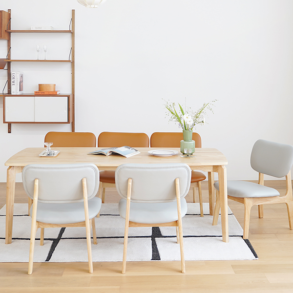 모아이 캐러멜 낮은 6인 1850 원목 식탁 세트 의자형