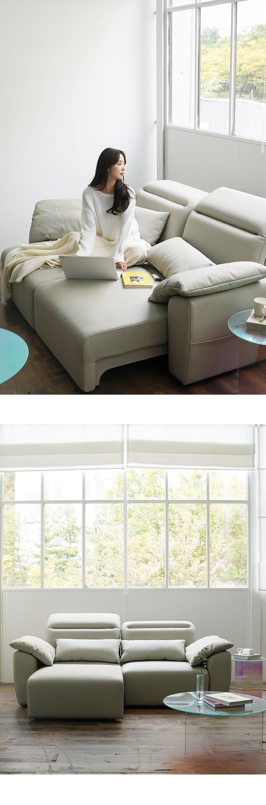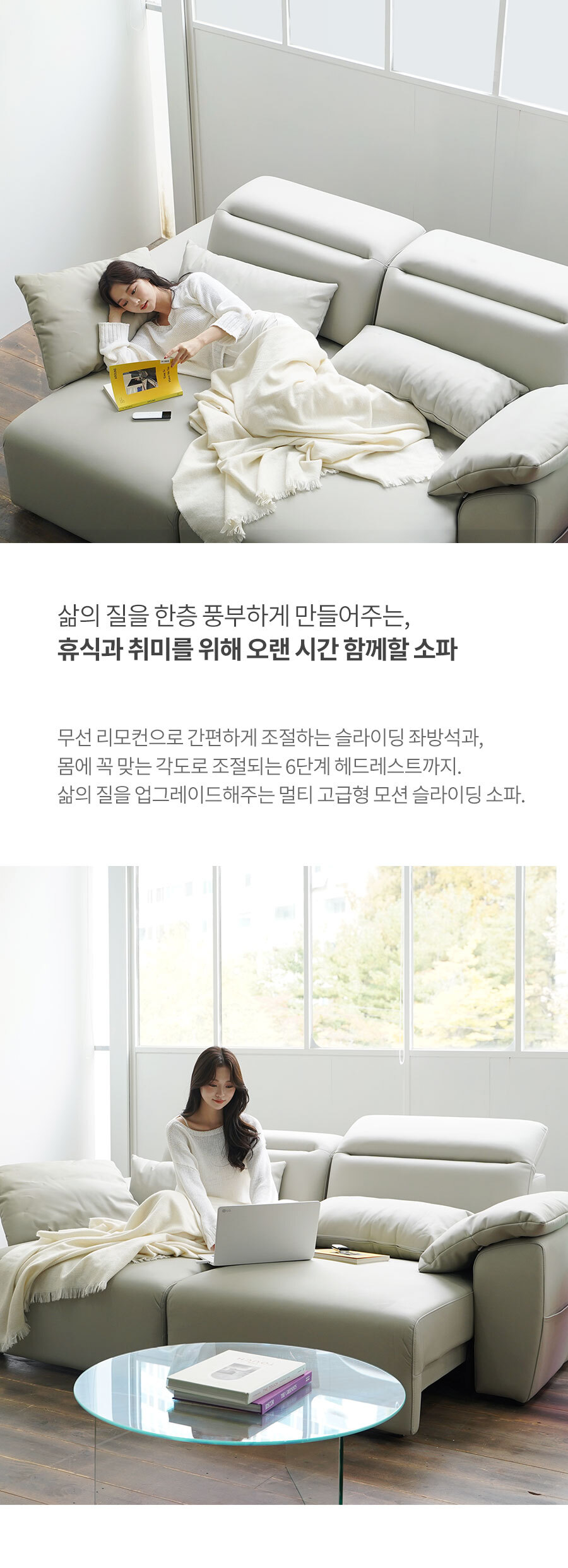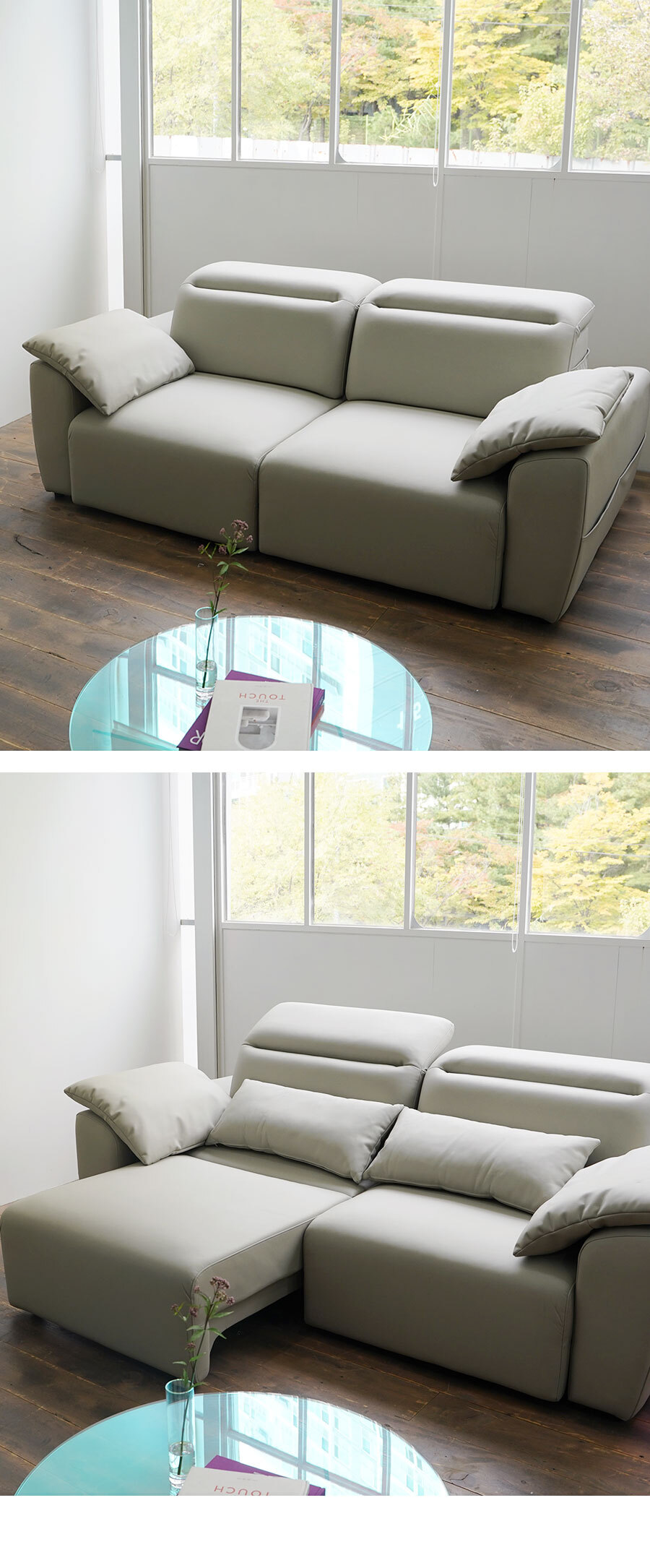 마루이 모넬 레더 모션 슬라이딩 리클라이너 3인 가죽 소파